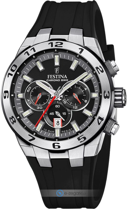 Męski zegarek F20671-6 z kolekcji Festina Chrono Bike marki Festina to połączenie smaku oraz nieprzeciętnych mechanizmów. Charakter zapewnia wysokiej klasy tarcza w kolorze czarnym. Zegarek ten prezentuje aktualny czas w formacie analogowym dzięki temu odczyt jest bezproblemowy. Koperta została pokryta kolorem srebrnym szeroka jest na 45 mm oraz ma grubość 13 mm - cechuje się okrągłym kształtem.