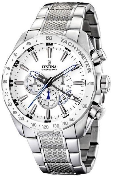 Festina tej marki chyba nie ma potrzeby specjalnie prezentować. To znana i ceniona w zasadzie na całym świecie marka zajmująca się produkcją czasomierzy, która narodziła się początkiem XX wieku w szwajcarskiej miejscowości La Chaux-de-Fonds. Od czasu kiedy marka weszła w skład nowej grupy Festina Group w latach 80-tych ubiegłego stulecia stała się nizwykle popularna. Aktualnie zegarki Festina można dostać w przeszło 50 krajach na świecie. Markę Festina bardzo często można dostrzec na różnego przekroju imprezach sportowych, np wyścigach kolarskich Tour de Pologne. Istotną cechą zgeraków Festina jest posiadanie specjalnie utwardzanego szkiełka mineralnego na które marka udziela osobnej 5 letniej gwarancji. Współcześnie twarzą marki jest modny i ceniony aktor Gerard Butler, można go dostrzec w wielu spotach reklamowych właśnie z czasomierzem Festina.