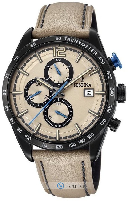 Zegarek męski F20344-1 marki Festina to idealne połączenie funkcjonalności oraz ciekawego designu. Model ten należy do serii Festina Chrono Sport. Wysokiej trwałości tarczę zegarka ozdobiono beżowym kolorem. Zegarek ten prezentuje godzinę w formacie analogowym dzięki czemu odczyt jest bardzo łatwy. Koperta w barwach koloru czarnego szeroka jest na 44 mm oraz ma grubość 12 mm - cechuje się okrągłym kształtem.