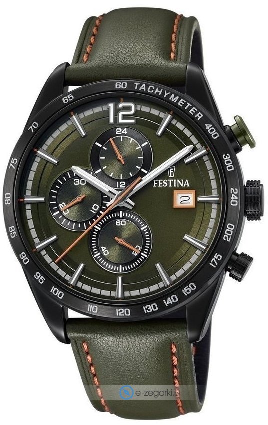 Zegarek F20344-6 zasilany jest za pomocą baterii kwarcowej. Pasek w tonacji koloru zielonego wykonany jest z wysokiej jakości skóry zapewniającej trwałość i komfort noszenia.