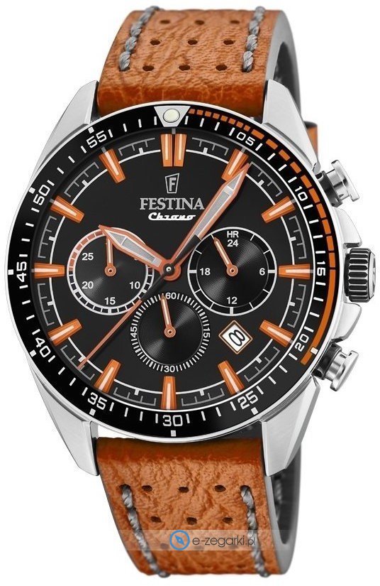 Festina tej marki z pewnością nie ma potrzeby specjalnie przedstawiać. To lubiana i doceniana w zasadzie na całym świecie marka zajmująca się produkcją czasomierzy, która narodziła się na początku XX wieku w Szwajcarii. Od momentu kiedy marka trafiła do osobnej grupy Festina Group w latach 80-tych poprzedniego stulecia stała się bardzo zauważalna. Aktualnie zegarki Festina można nabyć w ponad 50 krajach na świecie. Markę Festina bardzo często można dostrzec na różnego przekroju imprezach sportowych, np wyścigach kolarskich Tour de Pologne. Istotną cechą zgeraków Festina jest posiadanie specjalnego utwardzanego szkiełka mineralnego na które marka udziela osobnej 5 letniej gwarancji. Obecnie twarzą marki jest słynny i szanowany aktor Gerard Butler, można go zobaczyć w wielu spotach reklamowych właśnie z zegarkiem Festina.