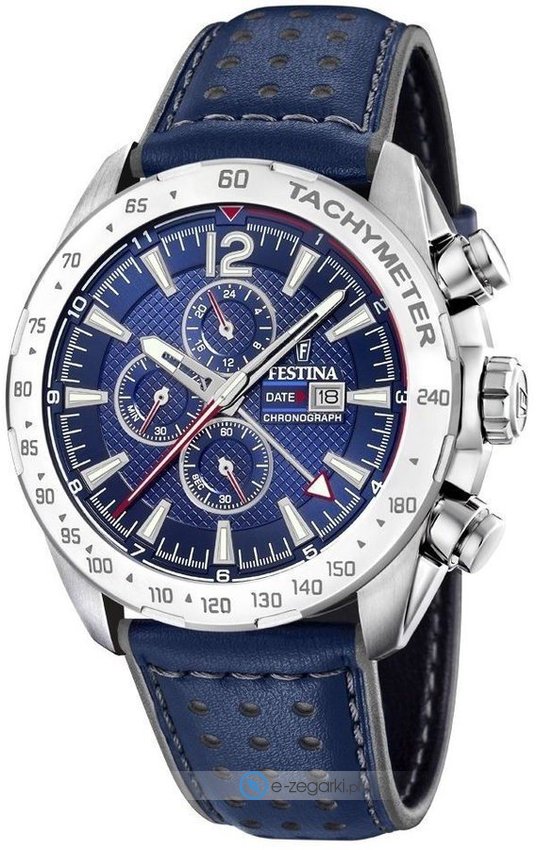 Zegarek F20440-2 marki Festina to stylowy zegarek naręczny męski, który jest wyposażony w pomysłowe rozwiązania i funkcje. Model ten zalicza się do serii Festina Chrono Sport. Niestereotypowy wygląd zegarka uzyskano m.in. poprzez cyferblat w kolorze granatowym. Zegarek ten pokazuje godzinę w formacie analogowym dzięki czemu odczyt jest intuicyjny. Koperta w odcieniach koloru srebrnego szeroka jest na 44 mm oraz ma grubość 13 mm - cechuje się okrągłym kształtem.