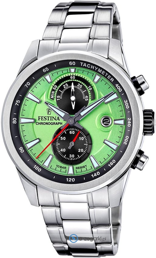 Zegarek męski F20694-3 marki Festina z serii Festina Chrono Sport. Niebanalną konstrukcję zegarka osiągnięto z pomocą tarczy w kolorze czarnym. Pokazana metodą analogową bieżąca godzina jest czytelna i łatwa do sprawdzenia. Koperta jest w kolorze srebrnym szeroka jest na 44 mm oraz ma grubość 11 mm - wyróżnia się okrągłym kształtem.