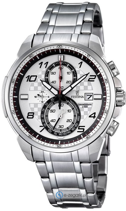 Zegarek męski F6842-2 marki Festina to idealne połączenie funkcjonalności a także ciekawego designu. Model ten w gamie innych zegarków tego producenta występuje w kolekcji Festina Chrono Sport. Charakterystyczną stylistykę czasomierza uzyskano dzięki tarczy w kolorze białym. Godzina pokazywana jest w sposób analogowy co bez trudu pozwala ją odczytać. Koperta w barwach koloru srebrnego szeroka jest na 46 mm oraz ma grubość 13 mm - charakteryzuje się okrągłym kształtem.