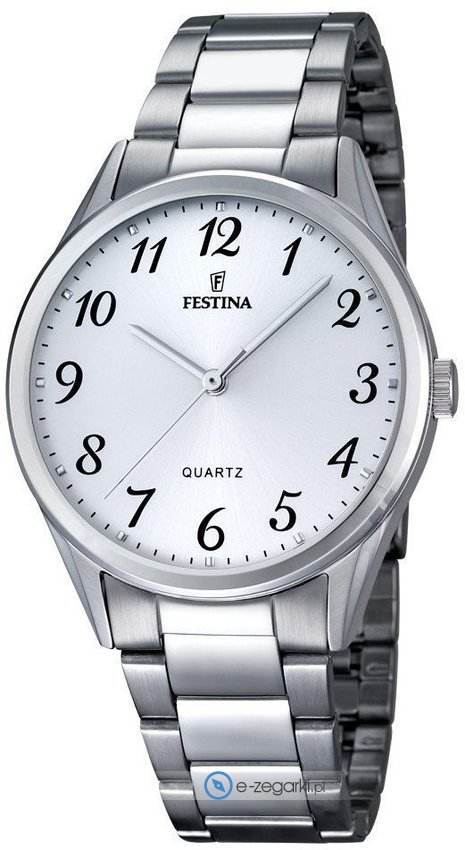 Zegarek męski F16875-1 marki Festina należy do serii Festina Classic Bracelet. Wysokiej trwałości tarczę zegarka pokryto białym kolorem. Zegarek ten prezentuje aktualny czas w formacie analogowym dzięki czemu odczyt jest intuicyjny. Koperta w barwach koloru srebrnego szeroka jest na 40 mm oraz ma grubość 10 mm - ma okrągły kształt.