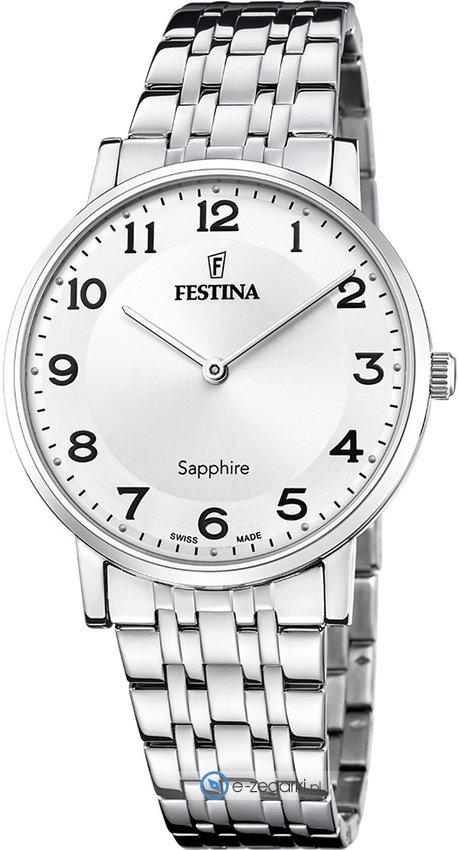 Męski zegarek F20045-1 z kolekcji Festina Classic Bracelet marki Festina to połączenie stylu oraz nowatorskich mechanizmów. Wysokiej jakości cyferblat zegarka ozdobiono srebrnym kolorem. Zegarek ten pokazuje aktualny czas w formacie analogowym dzięki czemu odczyt jest bardzo łatwy. Koperta w odcieniach koloru srebrnego szeroka jest na 39 mm oraz ma grubość 7 mm - ma okrągły kształt.