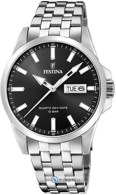 Model męski F20357-4 marki Festina należy do rodziny Festina Classic Bracelet. Tarcza zegarka jest w kolorze czarnym. Zegarek ten prezentuje aktualny czas w formacie analogowym dzięki temu odczyt jest bezproblemowy. Koperta została ozdobiona kolorem srebrnym szeroka jest na 41 mm oraz ma grubość 10 mm - cechuje się okrągłym kształtem.