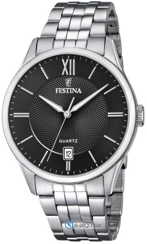 Model męski F20425-3 marki Festina z kolekcji Festina Classic Bracelet. Nieschematyczny wygląd zegarka uzyskano także dzięki tarczy w kolorze czarnym. Zegarek ten pokazuje aktualny czas w formacie analogowym dzięki temu odczyt jest bardzo łatwy. Koperta w barwach koloru srebrnego szeroka jest na 43 mm oraz ma grubość 7 mm - w kształcie okrągłym.