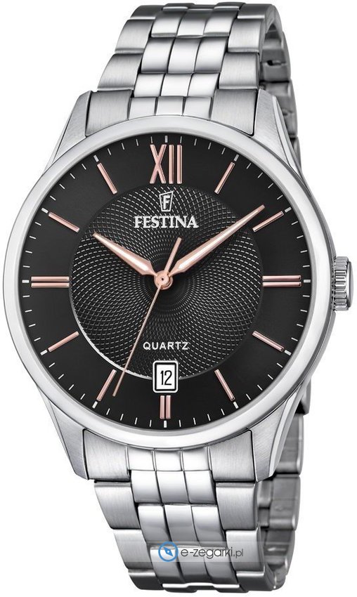 Festina tego brandu raczej nie ma konieczności specjalnie przedstawiać. To lubiana i uznawana w zasadzie na całym świecie marka zajmująca się produkcją czasomierzy, która narodziła się na początku XX wieku w szwajcarskiej miejscowości La Chaux-de-Fonds. Od czasu kiedy marka trafiła do nowej grupy Festina Group w latach 80-tych poprzedniego stulecia stała się nizwykle popularna. Obecnie zegarki Festina można kupić w ponad pięćdziesięciu krajach na wszystkich kontynentach. Markę Festina bardzo często można dostrzec na różnego rodzaju imprezach sportowych, np wyścigach kolarskich Tour de Pologne. Istotną cechą zgeraków Festina jest posiadanie specjalnie utwardzanego szkiełka mineralnego na które producent udziela osobnej pięcio letniej gwarancji. Współcześnie twarzą marki jest modny i ceniony aktor Gerard Butler, można go dostrzec w wielu spotach reklamowych właśnie z czasomierzem Festina.