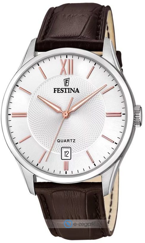 Festina tego brandu raczej nie ma potrzeby specjalnie przedstawiać. To znana i ceniona praktycznie na całym świecie marka zajmująca się produkcją zegarków, która narodziła się początkiem XX wieku w Szwajcarii. Od momentu gdy marka weszła w skład nowej grupy Festina Group w latach 80-tych poprzedniego stulecia stała się bardzo zauważalna. W dzisiejszych czasach zegarki Festina można nabyć w przeszło pięćdziesięciu krajach na świecie. Markę Festina bardzo często można dostrzec na różnego rodzaju imprezach sportowych, np wyścigach kolarskich Tour de Pologne. Wyróżnikiem zgeraków Festina jest posiadanie specjalnego utwardzanego szkiełka mineralnego na które marka udziela osobnej pięcio letniej gwarancji. Współcześnie twarzą marki jest popularny i ceniony aktor Gerard Butler, można go ujrzeć w wielu reklamach właśnie z zegarkiem Festina.