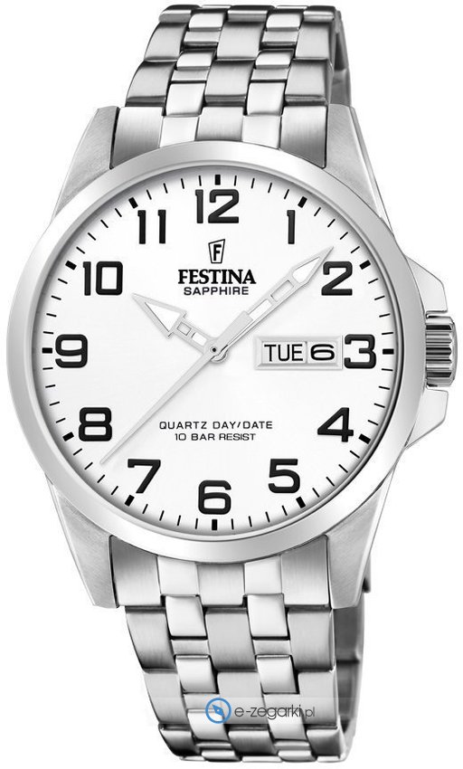 Zegarek męski F20558-1 marki Festina z serii Festina Classic Bracelet. Atrakcyjną budowę czasomierza osiągnięto dzięki tarczy w kolorze białym. Zegarek ten prezentuje aktualny czas w formacie analogowym dzięki temu odczyt jest intuicyjny. Koperta szeroka jest na 41 mm - cechuje się okrągłym kształtem.