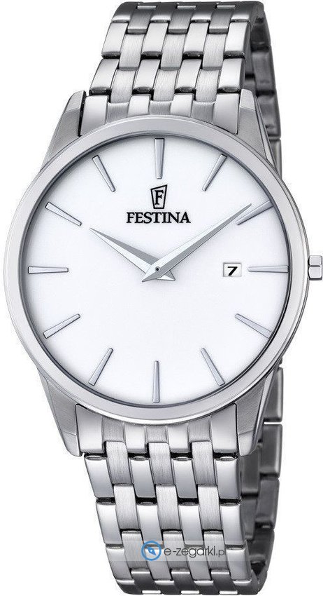 Zegarek F6833-1 marki Festina to elegancki zegarek naręczny męski, który posiada ciekawe rozwiązania i funkcje. Model ten należy do kolekcji Festina Classic Bracelet. Wysokiej trwałości tarczę zegarka ozdobiono białym kolorem. Zegarek ten prezentuje godzinę w formacie analogowym dzięki temu odczyt jest bezproblemowy. Koperta w barwach koloru srebrnego szeroka jest na 43 mm oraz ma grubość 7 mm - w kształcie okrągłym.