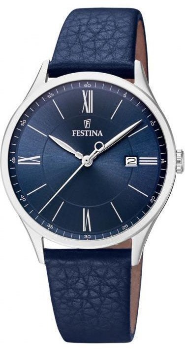 Zegarek męski F16978-3 marki Festina to idealne połączenie funkcjonalności i modnego wzornictwa. Model ten w gamie innych zegarków tego producenta występuje w serii Festina Classic Strap. Charakterystyczny wygląd czasomierza uzyskano także dzięki tarczy w kolorze niebieskim. Aktualna godzina pokazywana jest w sposób analogowy co intuicyjnie pozwala ją odczytać. Koperta jest w kolorze srebrnym szeroka jest na 39 mm - wyróżnia się okrągłym kształtem.