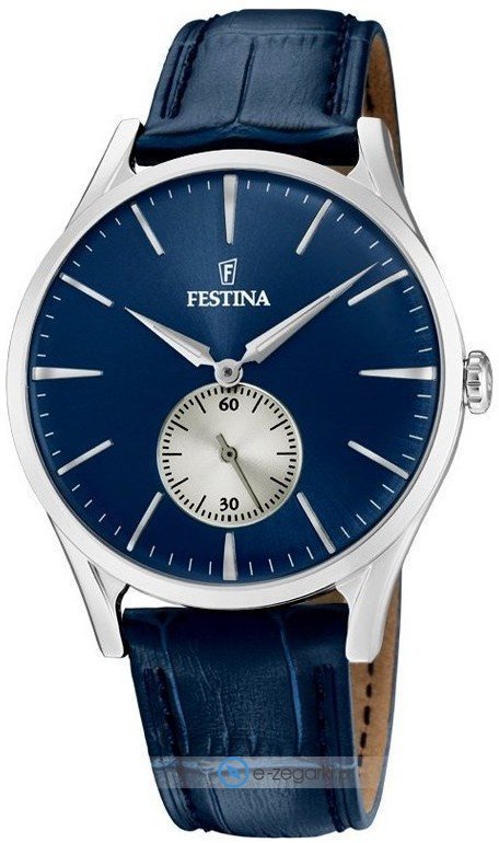 Zegarek męski F16979-3 z serii Festina Classic Strap marki Festina. Charakter zapewnia wysokiej klasy tarcza w kolorze granatowym. Godzina zaprezentowana jest w sposób analogowy co bez trudu pozwala ją odczytać. Koperta jest w kolorze srebrnym szeroka jest na 40 mm oraz ma grubość 7 mm - w kształcie okrągłym.