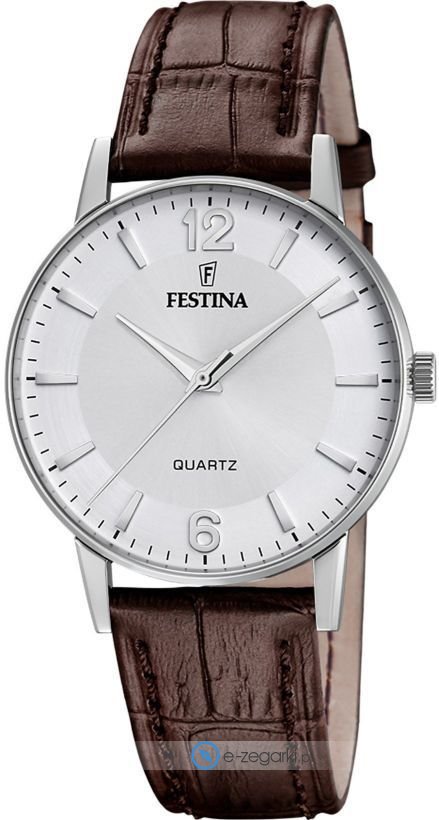 Festina tej marki z pewnością nie trzeba specjalnie prezentować. To lubiana i doceniana praktycznie na całym świecie marka zajmująca się produkcją czasomierzy, która narodziła się na początku XX wieku w szwajcarskiej miejscowości La Chaux-de-Fonds. Od czasu kiedy marka trafiła do osobnej grupy Festina Group w latach 80-tych ubiegłego stulecia stała się bardzo zauważalna. Obecnie zegarki Festina można nabyć w ponad pięćdziesięciu krajach na świecie. Markę Festina bardzo często można dostrzec na różnego przekroju imprezach sportowych, np wyścigach kolarskich Tour de Pologne. Wyróżnikiem zgeraków Festina jest posiadanie specjalnego utwardzanego szkiełka mineralnego na które Festina udziela osobnej pięcio letniej gwarancji. Współcześnie twarzą marki jest słynny i ceniony aktor Gerard Butler, można go zobaczyć w wielu spotach reklamowych właśnie z zegarkiem Festina.