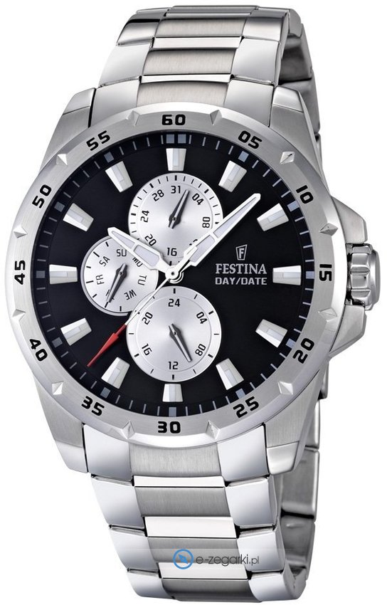Festina F16662-6 - męski zegarek kierowany dla osób szukających zegarka z rodziny Festina Multifunction. Styl zapewnia wysokiej jakości cyferblat w kolorze czarnym. Godzina pokazywana jest w sposób analogowy co bez trudu pozwala ją odczytać. Koperta została ozdobiona kolorem srebrnym szeroka jest na 44 mm oraz ma grubość 12 mm - posiada okrągły kształt.