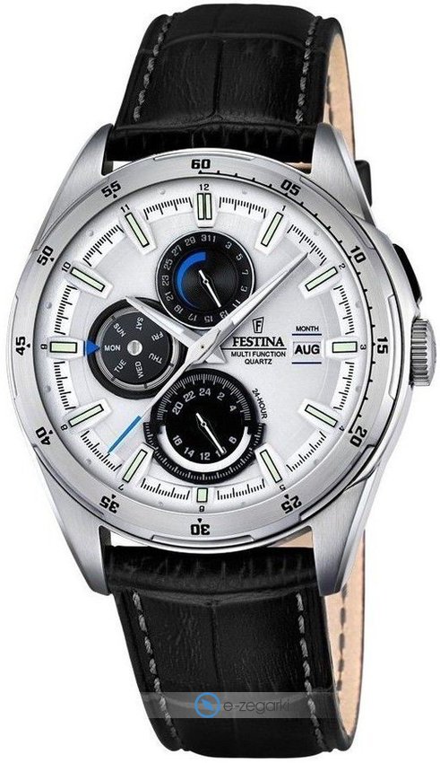 Zegarek męski F16877-1 marki Festina to stylowe połączenie funkcjonalności i ciekawego wzornictwa. Model ten w gamie pozostałych zegarków tego producenta występuje w kolekcji Festina Multifunction. Wysokiej trwałości tarczę zegarka pokryto białym kolorem. Aktualna godzina prezentowana jest w sposób analogowy co bez trudu pozwala ją odczytać. Koperta jest w kolorze srebrnym szeroka jest na 42 mm oraz ma grubość 11 mm - w kształcie okrągłym.