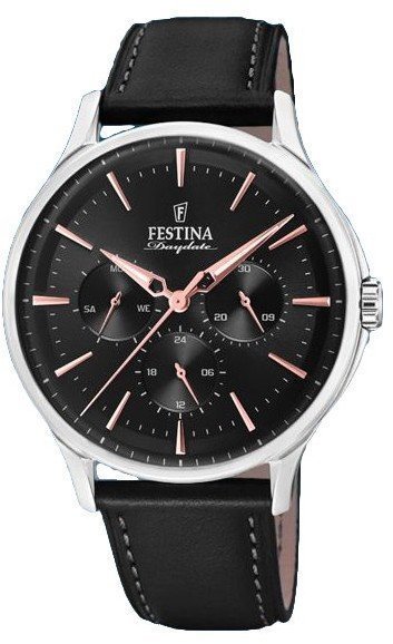 Męski zegarek F16991-4 z serii Festina Multifunction marki Festina to połączenie stylu i nieprzeciętnych funkcji. Charakteru nadaje wysokiej jakości cyferblat w kolorze czarnym. Aktualna godzina zaprezentowana jest w sposób analogowy co intuicyjnie pozwala ją odczytać. Koperta w barwach koloru srebrnego szeroka jest na 41 mm oraz ma grubość 10 mm - cechuje się okrągłym kształtem.
