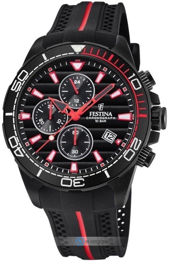 Festina tej marki zapewne nie ma potrzeby specjalnie prezentować. To lubiana i doceniana praktycznie na całym świecie marka zajmująca się produkcją czasomierzy, która narodziła się na początku XX wieku w Szwajcarii. Od czasu gdy marka trafiła do osobnej grupy Festina Group w latach 80-tych ubiegłego stulecia stała się bardzo zauważalna. W dzisiejszych czasach zegarki Festina można kupić w przeszło 50 krajach na wszystkich kontynentach. Markę Festina bardzo często można dostrzec na różnego przekroju imprezach sportowych, np wyścigach kolarskich Tour de France. Wyróżnikiem zgeraków Festina jest posiadanie specjalnego utwardzanego szkiełka mineralnego na które producent udziela osobnej 5 letniej gwarancji. Obecnie twarzą marki jest modny i szanowany aktor Gerard Butler, można go dostrzec w wielu reklamach właśnie z chronometrem Festina.