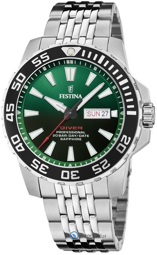 Męski zegarek F20661-2 z kolekcji Festina Originals marki Festina to połączenie smaku oraz ciekawych funkcji. Styl zapewnia wysokiej klasy cyferblat w kolorze zielonym. Zaprezentowana metodą analogową bieżąca godzina jest czytelna i łatwa do sprawdzenia. Koperta jest pokryta kolorem srebrnym szeroka jest na 45 mm - w kształcie okrągłym.