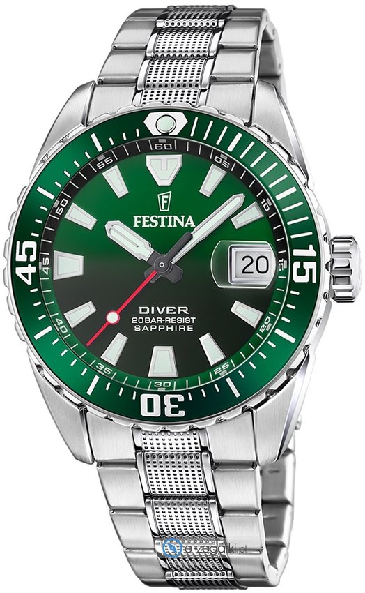 Zegarek F20669-2 marki Festina to elegancki zegarek naręczny męski, który wyposażono w pomysłowe rozwiązania i funkcje. Model ten należy do serii Festina Originals. Niebanalny wygląd zegarka uzyskano również dzięki tarczy w kolorze zielonym. Zaprezentowana metodą analogową bieżąca godzina jest czytelna i prosta do odczytania. Koperta jest w kolorze srebrnym szeroka jest na 41 mm oraz ma grubość 13 mm - w kształcie okrągłym.