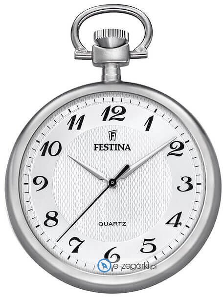 Festina F2020-1 - kieszonkowy to męski zegarek przeznaczony dla osób szukających zegarka z serii Festina Pocket. Nieschematyczny wygląd czasomierza osiągnięto m.in. poprzez tarczę w kolorze białym. Zaprezentowana metodą analogową aktualna godzina jest czytelna i prosta do sprawdzenia. Koperta jest ozdobiona kolorem srebrnym szeroka jest na 48 mm oraz ma grubość 11 mm - wyróżnia się okrągłym kształtem.