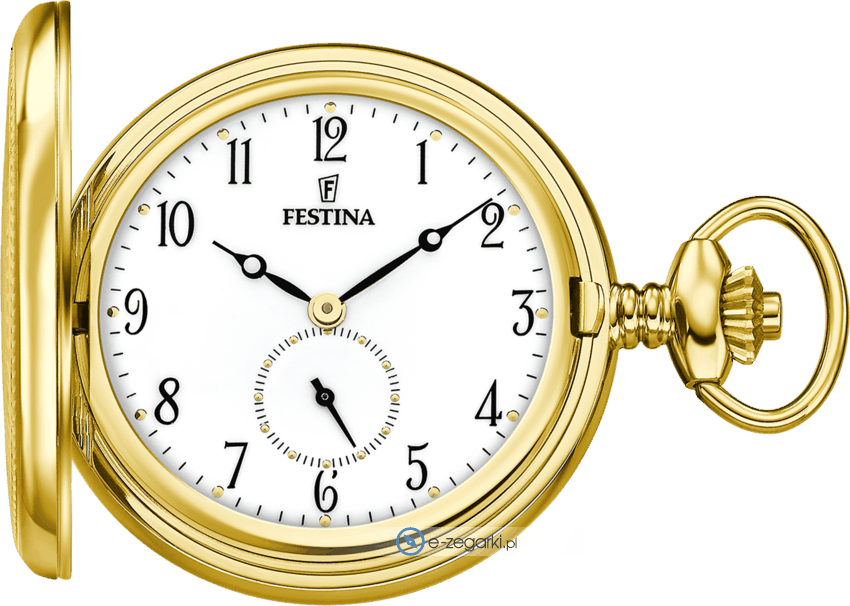 Zegarek F2029-1 - kieszonkowy marki Festina to gustowny zegarek naręczny męski, który posiada ciekawe rozwiązania i funkcje. Model ten należy do serii Festina Pocket. Tarcza zegarka jest w kolorze białym. Aktualna godzina pokazywana jest w sposób analogowy co intuicyjnie pozwala ją odczytać. Koperta w odcieniach koloru złotego szeroka jest na 48 mm oraz ma grubość 11 mm - w kształcie okrągłym.