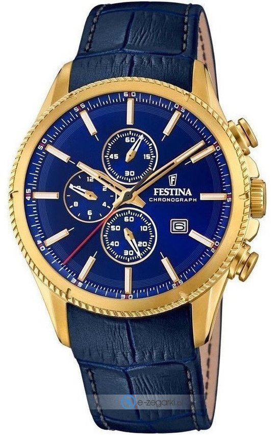 Model męski F20419-2 marki Festina z kolekcji Festina Prestige. Wysokiej trwałości tarczę zegarka pokryto niebieskim kolorem. Zegarek ten pokazuje godzinę w formacie analogowym dzięki temu odczyt jest bezproblemowy. Koperta w barwach koloru złotego szeroka jest na 43 mm oraz ma grubość 13 mm - w kształcie okrągłym.