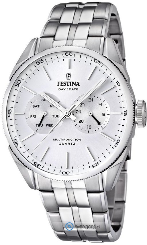 Model męski F16630-1 marki Festina z serii Festina Retro. Tarcza zegarka jest w kolorze srebrnym. Zegarek ten prezentuje godzinę w formacie analogowym dzięki temu odczyt jest intuicyjny. Koperta jest pokryta kolorem srebrnym szeroka jest na 43 mm oraz ma grubość 12 mm - cechuje się okrągłym kształtem.