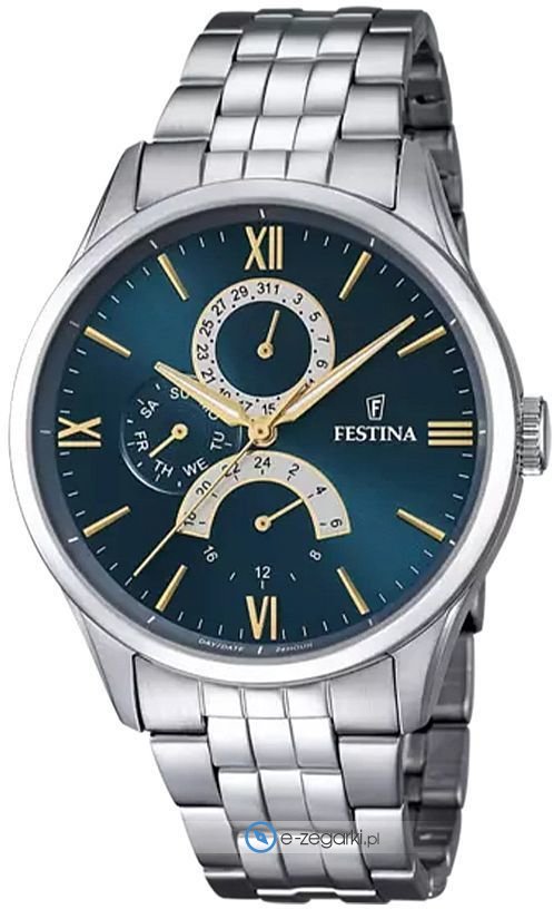 Festina F16822-A - męski zegarek kierowany dla osób szukających zegarka z serii Festina Retro. Atrakcyjny wygląd zegarka uzyskano m.in. poprzez cyferblat w kolorze granatowym. Zegarek ten prezentuje aktualny czas w formacie analogowym dzięki temu odczyt jest intuicyjny. Koperta w odcieniach koloru srebrnego szeroka jest na 43 mm oraz ma grubość 12 mm - w kształcie okrągłym.
