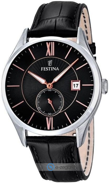 Festina F16872-4 - męski zegarek kierowany dla osób szukających zegarka z kolekcji Festina Retro. Charakterystyczny wygląd czasomierza uzyskano m.in. poprzez tarczę w kolorze czarnym. Aktualna godzina prezentowana jest w sposób analogowy co intuicyjnie pozwala ją odczytać. Koperta została pokryta kolorem srebrnym szeroka jest na 42 mm oraz ma grubość 11 mm - posiada okrągły kształt.