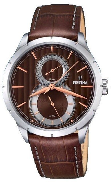 Model męski F16892-5 marki Festina należy do kolekcji Festina Retro. Niebanalną budowę zegarka osiągnięto z pomocą tarczy w kolorze brązowym. Aktualna godzina pokazywana jest w sposób analogowy co niezmiernie łatwo pozwala ją odczytać. Koperta została pokryta kolorem srebrnym szeroka jest na 46 mm oraz ma grubość 11 mm - cechuje się okrągłym kształtem.