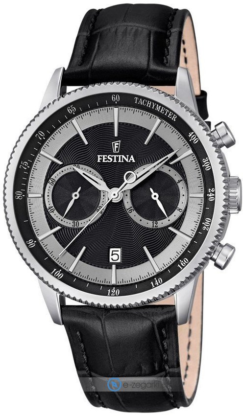 Zegarek F16893-8 marki Festina to elegancki zegarek naręczny męski, który jest wyposażony w ciekawe rozwiązania i funkcje. Model ten zalicza się do kolekcji Festina Retro. Stylu dodaje wysokiej jakości cyferblat w kolorze czarnym. Godzina zaprezentowana jest w sposób analogowy co intuicyjnie pozwala ją odczytać. Koperta jest pokryta kolorem srebrnym szeroka jest na 42 mm oraz ma grubość 11 mm - ma okrągły kształt.