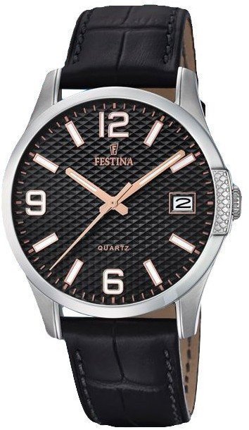 Festina tej marki chyba nie ma konieczności specjalnie prezentować. To lubiana i uznawana praktycznie na całym świecie marka zajmująca się produkcją czasomierzy, która narodziła się na początku XX wieku w szwajcarskiej miejscowości La Chaux-de-Fonds. Od czasu kiedy marka trafiła do nowej grupy Festina Group w latach osiemdziesiątych ubiegłego stulecia stała się bardzo zauważalna. Obecnie zegarki Festina można dostać w ponad pięćdziesięciu krajach na świecie. Markę Festina bardzo często można dostrzec na różnego rodzaju imprezach sportowych, np wyścigach kolarskich Tour de France. Istotną cechą zgeraków Festina jest posiadanie specjalnego utwardzanego szkiełka mineralnego na które Festina udziela osobnej 5 letniej gwarancji. Obecnie twarzą marki jest znany i ceniony aktor Gerard Butler, można go dostrzec w wielu reklamach właśnie z czasomierzem Festina.