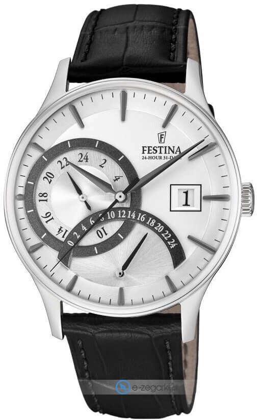 Festina F16983-1 - męski zegarek przeznaczony dla osób szukających zegarka z rodziny Festina Retro. Niebanalną stylistykę czasomierza osiągnięto z pomocą tarczy w kolorze srebrnym. Godzina pokazywana jest w sposób analogowy co bez trudu pozwala ją odczytać. Koperta w odcieniach koloru srebrnego szeroka jest na 42 mm oraz ma grubość 11 mm - posiada okrągły kształt.