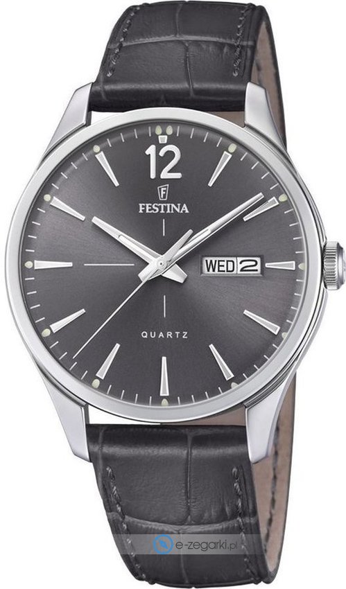Festina tej marki z pewnością nie ma potrzeby specjalnie prezentować. To znana i uznawana praktycznie na całym świecie marka zajmująca się produkcją czasomierzy, która narodziła się na początku XX wieku w Szwajcarii. Od czasu gdy marka trafiła do osobnej grupy Festina Group w latach osiemdziesiątych poprzedniego stulecia stała się bardzo zauważalna. Aktualnie zegarki Festina można dostać w przeszło 50 krajach na świecie. Markę Festina bardzo często można dostrzec na różnego przekroju imprezach sportowych, np wyścigach kolarskich Tour de Pologne. Istotną cechą zgeraków Festina jest posiadanie specjalnie utwardzanego szkiełka mineralnego na które producent udziela osobnej pięcio letniej gwarancji. Współcześnie twarzą marki jest znany i ceniony aktor Gerard Butler, można go ujrzeć w wielu reklamach właśnie z zegarkiem Festina.