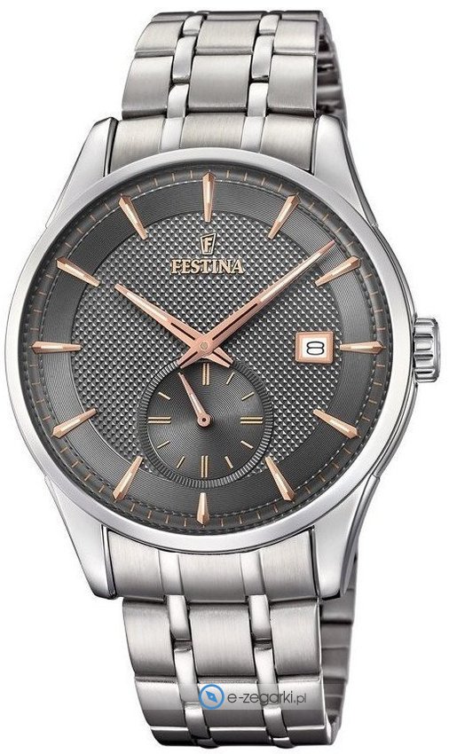 Festina tej marki raczej nie ma konieczności specjalnie przedstawiać. To znana i doceniana w zasadzie na całym świecie marka zajmująca się produkcją czasomierzy, która narodziła się początkiem XX wieku w Szwajcarii. Od czasu gdy marka weszła w skład osobnej grupy Festina Group w latach osiemdziesiątych poprzedniego stulecia stała się nizwykle popularna. Obecnie zegarki Festina można nabyć w ponad 50 krajach na świecie. Markę Festina bardzo często można dostrzec na różnego przekroju imprezach sportowych, np wyścigach kolarskich Tour de Pologne. Istotną cechą zgeraków Festina jest posiadanie specjalnego utwardzanego szkiełka mineralnego na które producent udziela osobnej pięcio letniej gwarancji. Obecnie twarzą marki jest słynny i ceniony aktor Gerard Butler, można go zobaczyć w wielu reklamach właśnie z czasomierzem Festina.