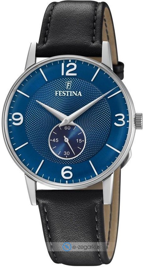 Festina F20566-3 - męski zegarek kierowany dla osób szukających zegarka z rodziny Festina Retro. Nieschematyczny wygląd zegarka uzyskano również dzięki tarczy w kolorze niebieskim. Zaprezentowana metodą analogową aktualna godzina jest czytelna i szybka do sprawdzenia. Koperta jest w kolorze srebrnym szeroka jest na 36 mm - w kształcie okrągłym.