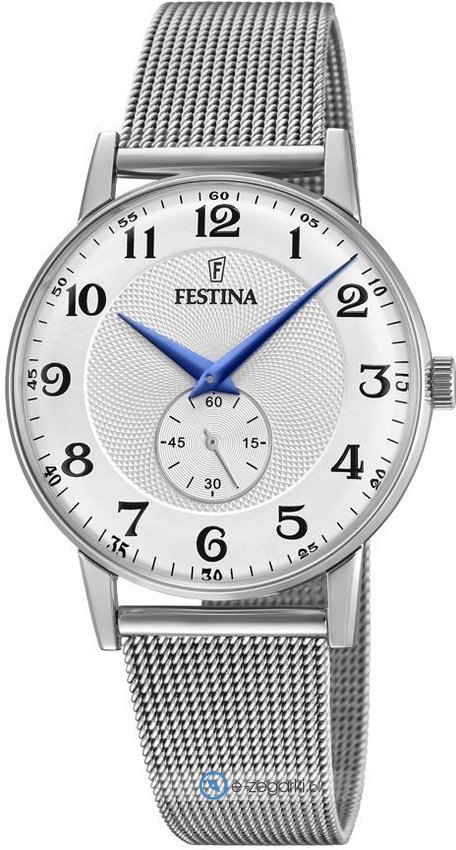 Model męski F20568-1 marki Festina należy do kolekcji Festina Retro. Niestereotypowy wygląd czasomierza osiągnięto m.in. poprzez tarczę w kolorze białym. Zegarek ten pokazuje aktualny czas w formacie analogowym dzięki temu odczyt jest bezproblemowy. Koperta jest pokryta kolorem srebrnym szeroka jest na 36 mm - ma okrągły kształt.