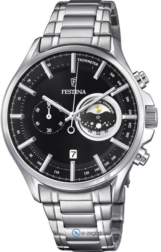 Zegarek męski F6852-3 marki Festina z serii Festina Retro. Atrakcyjny wygląd zegarka uzyskano m.in. poprzez tarczę w kolorze czarnym. Zegarek ten pokazuje aktualny czas w formacie analogowym dzięki czemu odczyt jest bardzo łatwy. Koperta jest w kolorze srebrnym szeroka jest na 43 mm oraz ma grubość 12 mm - wyróżnia się okrągłym kształtem.