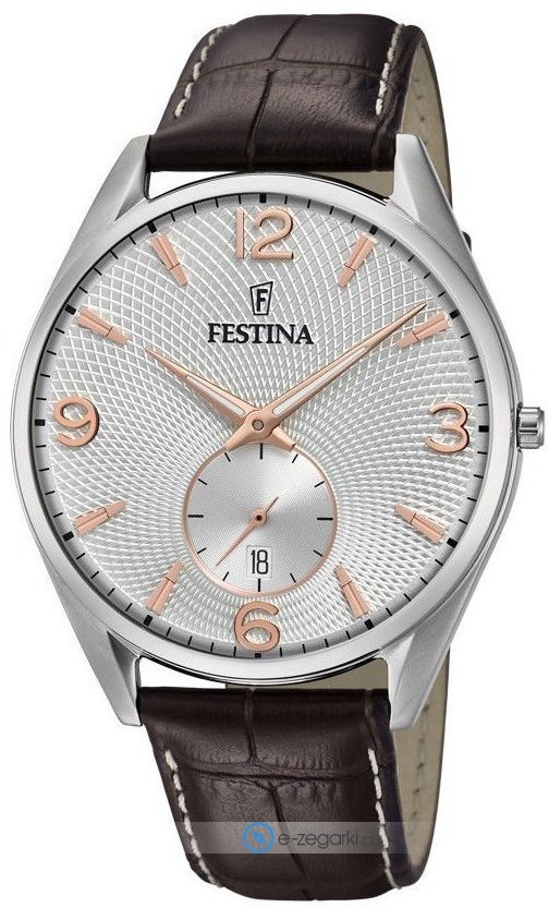 Festina tej marki z pewnością nie trzeba specjalnie prezentować. To znana i uznawana w zasadzie na całym świecie marka zajmująca się produkcją zegarków, która narodziła się na początku XX wieku w szwajcarskiej miejscowości La Chaux-de-Fonds. Od momentu gdy marka weszła w skład osobnej grupy Festina Group w latach osiemdziesiątych ubiegłego stulecia stała się nizwykle popularna. Aktualnie zegarki Festina można kupić w przeszło pięćdziesięciu krajach na świecie. Markę Festina bardzo często można dostrzec na różnego przekroju imprezach sportowych, np wyścigach kolarskich Tour de France. Wyróżnikiem zgeraków Festina jest posiadanie specjalnego utwardzanego szkiełka mineralnego na które marka udziela osobnej pięcio letniej gwarancji. Współcześnie twarzą marki jest modny i szanowany aktor Gerard Butler, można go dostrzec w wielu reklamach właśnie z zegarkiem Festina.