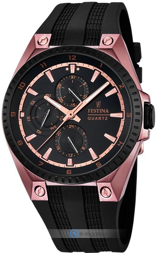 Festina tej marki z pewnością nie trzeba specjalnie przedstawiać. To znana i uznawana praktycznie na całym świecie marka zajmująca się produkcją zegarków, która narodziła się początkiem XX wieku w szwajcarskiej miejscowości La Chaux-de-Fonds. Od momentu gdy marka weszła w skład osobnej grupy Festina Group w latach 80-tych poprzedniego stulecia stała się nizwykle popularna. Aktualnie zegarki Festina można kupić w przeszło 50 krajach na świecie. Markę Festina bardzo często można zobaczyć na różnego rodzaju imprezach sportowych, np wyścigach kolarskich Tour de France. Wyróżnikiem zgeraków Festina jest posiadanie specjalnie utwardzanego szkiełka mineralnego na które Festina udziela osobnej pięcio letniej gwarancji. Obecnie twarzą marki jest znany i szanowany aktor Gerard Butler, można go zobaczyć w wielu spotach reklamowych właśnie z chronometrem Festina.