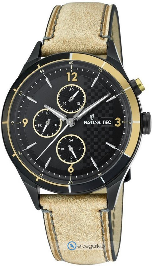 Festina tego brandu z pewnością nie trzeba specjalnie prezentować. To znana i uznawana praktycznie na całym świecie marka zajmująca się produkcją czasomierzy, która narodziła się na początku XX wieku w Szwajcarii. Od czasu gdy marka trafiła do osobnej grupy Festina Group w latach osiemdziesiątych ubiegłego stulecia stała się bardzo zauważalna. W dzisiejszych czasach zegarki Festina można nabyć w przeszło pięćdziesięciu krajach na wszystkich kontynentach. Markę Festina bardzo często można zobaczyć na różnego rodzaju imprezach sportowych, np wyścigach kolarskich Tour de France. Istotną cechą zgeraków Festina jest posiadanie specjalnego utwardzanego szkiełka mineralnego na które Festina udziela osobnej 5 letniej gwarancji. Obecnie twarzą marki jest popularny i ceniony aktor Gerard Butler, można go zobaczyć w wielu spotach reklamowych właśnie z czasomierzem Festina.