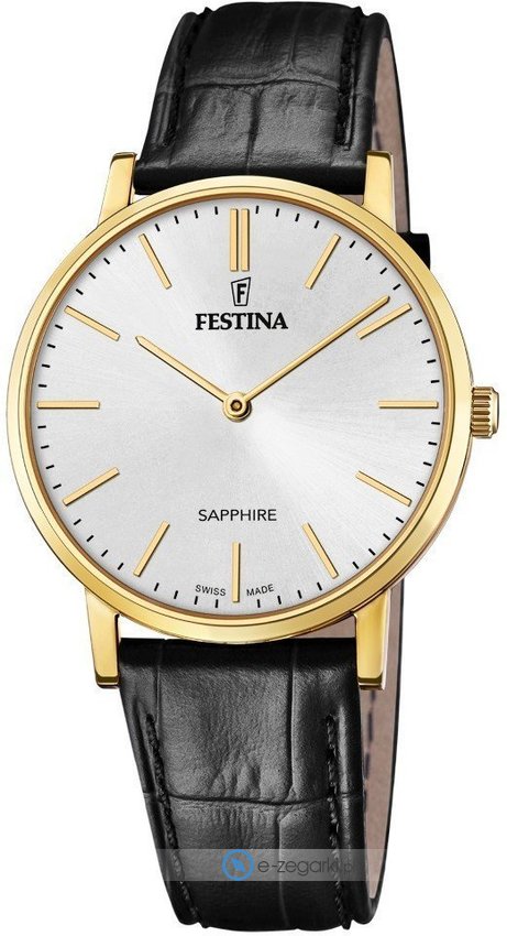 Model męski F20016-1 marki Festina z kolekcji Festina Swiss Made. Wysokiej jakości cyferblat zegarka ozdobiono srebrnym kolorem. Aktualna godzina pokazywana jest w sposób analogowy co bez trudu pozwala ją odczytać. Koperta w barwach koloru złotego szeroka jest na 39 mm - posiada okrągły kształt.