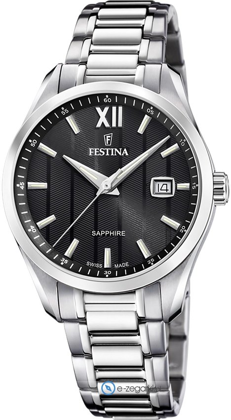 Model męski F20026-4 z kolekcji Festina Swiss Made marki Festina. Cyferblat zegarka jest w kolorze czarnym. Zegarek ten prezentuje aktualny czas w formacie analogowym dzięki czemu odczyt jest intuicyjny. Koperta jest w kolorze srebrnym szeroka jest na 38 mm oraz ma grubość 9 mm - ma okrągły kształt.