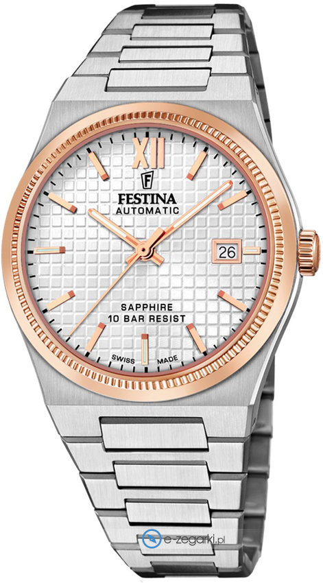 Festina tego brandu z pewnością nie ma potrzeby specjalnie prezentować. To lubiana i ceniona w zasadzie na całym świecie marka zajmująca się produkcją czasomierzy, która narodziła się początkiem XX wieku w Szwajcarii. Od momentu gdy marka weszła w skład nowej grupy Festina Group w latach 80-tych ubiegłego stulecia stała się bardzo zauważalna. Obecnie zegarki Festina można dostać w ponad pięćdziesięciu krajach na świecie. Markę Festina bardzo często można dostrzec na różnego przekroju imprezach sportowych, np wyścigach kolarskich Tour de Pologne. Wyróżnikiem zgeraków Festina jest posiadanie specjalnego utwardzanego szkiełka mineralnego na które producent udziela osobnej pięcio letniej gwarancji. Obecnie twarzą marki jest modny i ceniony aktor Gerard Butler, można go dostrzec w wielu spotach reklamowych właśnie z zegarkiem Festina.
