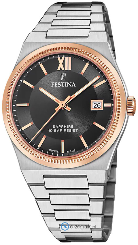 Festina tego brandu raczej nie ma konieczności specjalnie prezentować. To znana i doceniana praktycznie na całym świecie marka zajmująca się produkcją czasomierzy, która narodziła się początkiem XX wieku w szwajcarskiej miejscowości La Chaux-de-Fonds. Od momentu kiedy marka weszła w skład osobnej grupy Festina Group w latach osiemdziesiątych ubiegłego stulecia stała się bardzo zauważalna. Obecnie zegarki Festina można kupić w ponad pięćdziesięciu krajach na wszystkich kontynentach. Markę Festina bardzo często można dostrzec na różnego rodzaju imprezach sportowych, np wyścigach kolarskich Tour de France. Wyróżnikiem zgeraków Festina jest posiadanie specjalnego utwardzanego szkiełka mineralnego na które marka udziela osobnej 5 letniej gwarancji. Obecnie twarzą marki jest znany i szanowany aktor Gerard Butler, można go zauważyć w wielu reklamach właśnie z zegarkiem Festina.