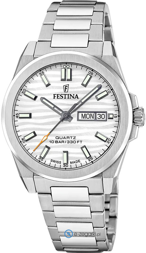 Festina tego brandu chyba nie ma konieczności specjalnie prezentować. To lubiana i uznawana w zasadzie na całym świecie marka zajmująca się produkcją zegarków, która narodziła się początkiem XX wieku w Szwajcarii. Od czasu kiedy marka trafiła do osobnej grupy Festina Group w latach 80-tych poprzedniego stulecia stała się bardzo zauważalna. Aktualnie zegarki Festina można dostać w ponad 50 krajach na świecie. Markę Festina bardzo często można zobaczyć na różnego przekroju imprezach sportowych, np wyścigach kolarskich Tour de France. Wyróżnikiem zgeraków Festina jest posiadanie specjalnie utwardzanego szkiełka mineralnego na które marka udziela osobnej pięcio letniej gwarancji. Obecnie twarzą marki jest znany i ceniony aktor Gerard Butler, można go zauważyć w wielu spotach reklamowych właśnie z chronometrem Festina.