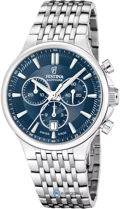 Model męski F20093-2 z rodziny Festina Swiss Made to kwintesencja szwajcarskiego zegarmistrzostwa, połączona ze sportowym stylem. Stylu dodaje wysokiej klasy cyferblat w kolorze niebieskim, który przyciąga wzrok i nadaje zegarkowi unikalnego charakteru. Zegarek ten prezentuje aktualny czas w formacie analogowym dzięki temu odczyt jest bardzo łatwy. Koperta jest w kolorze srebrnym szeroka jest na 40 mm oraz ma grubość 10 mm - posiada okrągły kształt. Jeśli szukasz zegarka, który łączy w sobie tradycję i nowoczesność, koniecznie sprawdź pełną ofertę Festina Swiss Made.