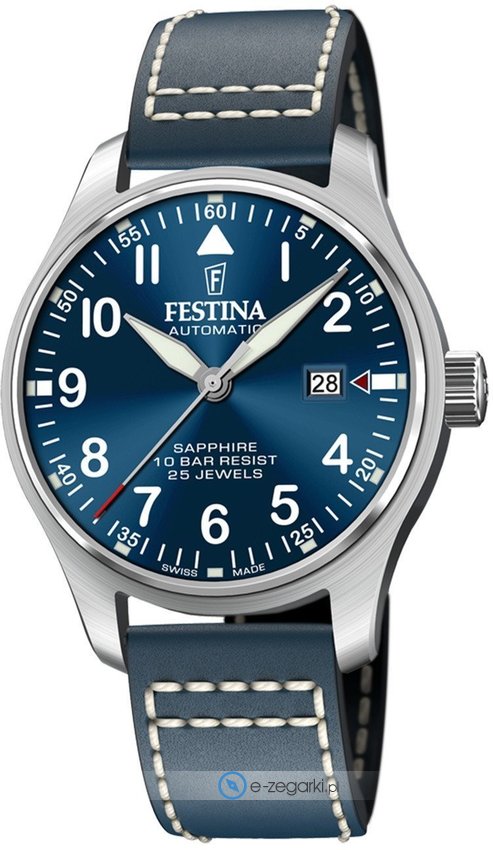 Model męski F20151-3 zalicza się do rodziny Festina Swiss Made marki Festina. Charakterystyczny wygląd czasomierza osiągnięto m.in. poprzez cyferblat w kolorze niebieskim. Zaprezentowana metodą analogową bieżąca godzina jest czytelna i prosta do sprawdzenia. Koperta w barwach koloru srebrnego szeroka jest na 44 mm oraz ma grubość 12 mm - charakteryzuje się okrągłym kształtem.